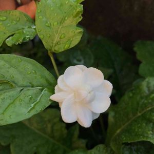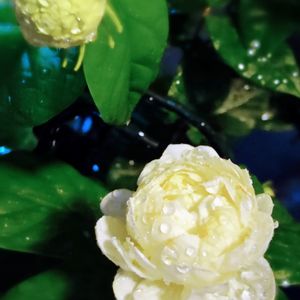 おはようございます♪̊̈♪̆̈ ポツポツ雨降り☂️ 25°Cが涼しく感じます☺️ 八重咲きジャスミン こちらもポツポツと🥰 去年もこんな感じで ひとつお花が終わると、ひとつ咲く🌸 いい香りに癒されます😌゚・*:.。❁