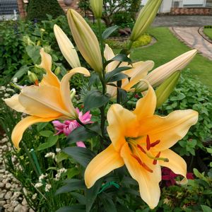 こんにちは😊 蒸し暑さ😅庭に出るたび 引き返し😅😆🌿 やっと、パチリ❗ 可愛い❤ゆりさん、咲き出しました💞 熱中症にお気をつけください❗