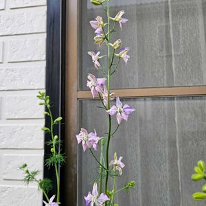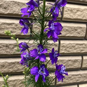 見元園芸 かぐや姫 絞り模様の珍しいラークスパー 毎年買っていますが、今年は上手く育てられてると思います。一気に大きくなるので支柱立てるタイミングを毎年逃してます。花色はかなり好きです!