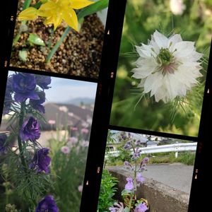 今日は久しぶりに快晴☀️ 昨日はたっぷり雨が降ったから水遣りはいらないよね。と思ったらバラが萎れていて‥。過密だからか鉢に全然水が入らないらしくカラカラでした😱 1.イソトマ この子を見つけた時が今日1番心が沸いた瞬間☝️ 毎年零れ種で出てくるイソトマ。今年はこんな所から!地面から出てきてると思って鉢が邪魔してるのかと退けたら、なんとスリットの隙間からでした。 2.写真に撮ったら誰だか分からなくなったけどクリスタルヴェールかフレンチボレロのどちらかさん。よしよし、水色に色付いてきた🩵 3.ラークスパー アンティークラベンダー アールグレイに似てるけどどうなの?と思って買ってみた。アールグレイは種まきしたのでヒョロヒョロの子が出てきてます。咲いたら比べてみます。 4.5.フレンチボレロとクリスタルヴェール2 今年は2つとももりもりです✨