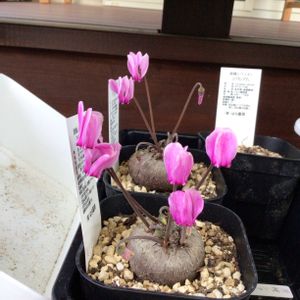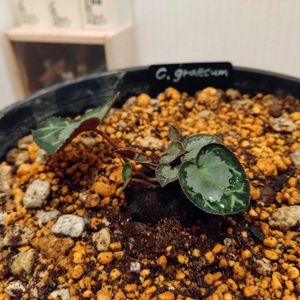 原種シクラメンシーズン到来 毎年トップバッターのグラエカム うちではヘデリより先にグラエカムが咲きます🌸 球根の成長が早くて 去年植え替えたけど、おそらくすでにパンパン💦 写真撮るのにタグを抜こうと思ったら抜けなかった... 花が終わったら鉢増ししてあげないとかな... 花が終わると可愛い葉がワサワサ出てきます🌱