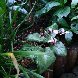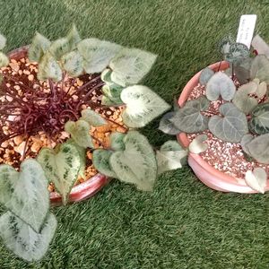 原種シクラメン📝 *ミラビレ *グラエカム プラスチック鉢 →陶器鉢に植え替えました①〜③ *コウム ロクベンシモツケとの寄植え鉢 →花壇に植え替えました *コウム 花壇植え →少しづつ開花💗④ *ヘデリフォリウム 花壇植え →葉っぱっぱ🌿🌿 *インタミナタム スモークツリー(鉢植え)の足元植え →葉っぱっぱ🌿🌿