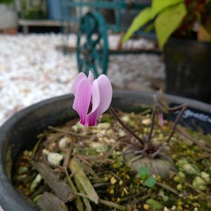 23.0℃🌅/31℃☔⚡️ 熱中症警戒アラート発令中⚠️ 原種シクラメン グラエカム 咲いた咲いた♡ はじめまして!うっすら縞がはいった美人さん💗🩷 📝他のシクラメンの様子 *ヘデリフォリウム 1つ💫に🥲 あとは順調に🌱🌱⤴️中♪ *インタミナム *ミラビレ *コウム みなさん🛌💤中 *ガーデンシクラメン クレヨン(か?!) 花壇から葉っぱ1枚⚆⚆ ˊ˗🌿 去年咲かなかった球根、埋めたっけか🙄
