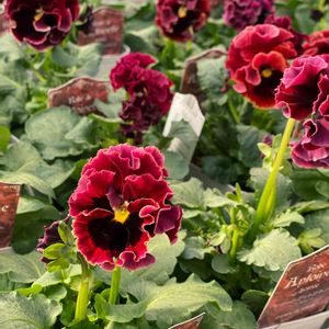 この濃い紫のクリスマスローズが目当てだったので買えて嬉しい アメリカでは Lenten Rose とか Helleborus と呼ばれます この色のものには Honeymoon Vegas Nights という名が (なんでこういう名前?) すぐにでも地植えできるかと思ったらあと1ヶ月くらいは待ったほうが良いようで、ちゃんと管理できるか不安 パンジー、ビオラは結局いつも行く園芸店で購入 ここで日本の皆さんがよく投稿されるフリフリな種類は入手できない(出回らない)ので、ちょっと面白くありませんが、春一番はパンジーよね というので幸せな気分に ビオラのこの微妙な色のものはずっとかい損ねていたので見つかってよかった