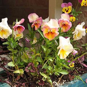 パンジーとビオラのミックス鉢を只今養生中。花が咲いてきました。