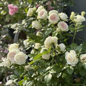 わが家のバラ17種類の中で、一番は何かなぁと毎日眺めてましたが、ラ・フランスでもなければ真宙でもなくオレンジのバラでもなく、このチャールストンでした🌹 今朝は雨でしたが、咲いてくれたので撮ってきました🙋♀️ 2枚目以降は、わが家の白いお花たち〜♡