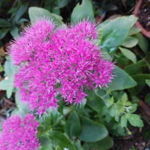 ムラサキベンケイソウ属 オオベンケイソウ・オータムジョイさんの 濃ゆいピンクの蕾ちゃん😻💗🤍💚 咲くと淡いピンク色です😽💕 右下のちょろっとショッキングピンクのコはマジカルキューティさんのお花さん😸💖 ピンク