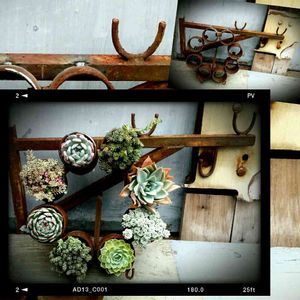 『古い道具×工場のおじいさん&甥っ子+多肉とセダム』 ~鉄のリース☆古い道具をちょこっと加工~