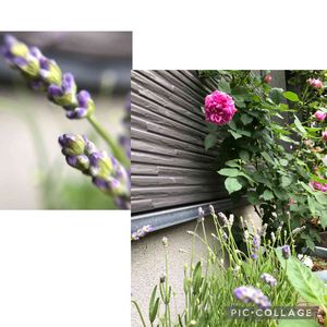 バラの足元で、イングリッシュラベンダーも色付いてきました。 このラベンダーは暑さや蒸れにも強くて、本州、九州でも初夏から秋まで元気に咲いてくれます。