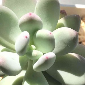 昼間ベランダ多肉パトロール中、蜂が現れるまでに撮った子を思い出して今投下(*^^*) 横顔が何だか綺麗で可愛いなぁ、と。ほんのり色付いてるのが可愛い。 徒長しまくった去年ちょんぱしたら出てきた脇芽…がまた徒長し今はオルビキュラリスの上ににょきっと。多分淡雪?若しかしたら桜月かな? 若干傾いてる星の王子と四海波が友情出演(*≧艸≦)