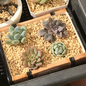 去年の4月に迎えたデレッセーナちゃん。迎えたころは葉焼けして可哀想な姿になってたけど、今年は一皮剥けて可愛くなりました(*^^*) 左奥は葉挿しっ子ラウリンゼ。育ったねぇ。