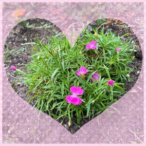 鉢植えにしてたナデシコを地植えに〜お花がチラリ咲いてきました💕 ②チドリソウのピンク🩷がかわいい😍 ③お山の花壇〜上からパチリ♬ ケイトウを植え込んで〜真ん中にチドリソウがビヨーヨーン😆もうちょっと端っこにしなくては💦 ④サルビアとマリーゴールド〜奥にケイトウ♬ナデシコと一緒に植え込みました♬大きくなーれ〜😍