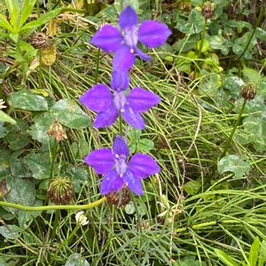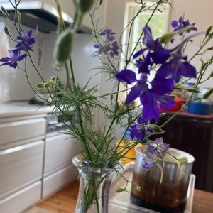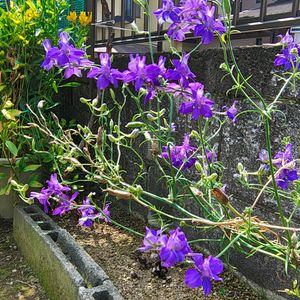 楽しい形のお花が咲いていました😊 ヒエンソウ キンポウゲ科デルフィニウム属のお花。 和名はチドリソウとも。 初めてのお花だったと思います🤗