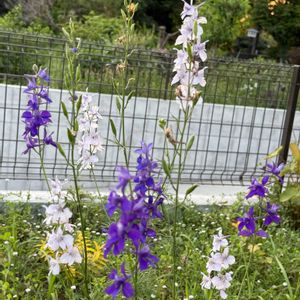 「公園花壇で見つけた」 撮影📱2025.6.21 おはようございます😀 熊本市加勢川沿いの 公園花壇で撮影📱 チドリソウ🌼 紫色と白色の花🌼が 花壇で咲いてたよ😀 鮮やかな色合いの花に 癒やされたばい🎵