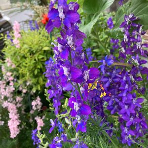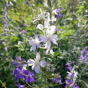 坂井市春江の花の駅ゆりの里公園にて チドリソウの花が涼しげに咲いていました🤍✨ 少し離れた所ではピンクと紫も🩷💜