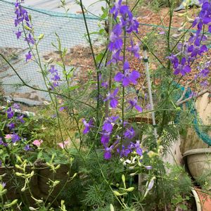 大好きなお花チドリソウ💜 今年は種まき組よりも先にこぼれ種組がアチコチに一つづつ咲きました☺️