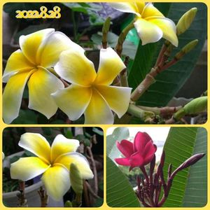 今日は涼しく感じます🎵 赤は初開花です😃💕 🟡黄色は4輪…ヽ(´▽`)/ 連日プルメリアに 癒されてます\(^o^)/