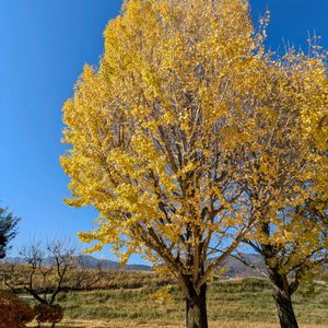 こんにちは😊 散歩に行く公園で まだ黃葉が残っていました💛😀 青空とコラボ🩵💛 🏷月曜日にビタミンカラーに参加します😊