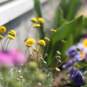花ほたる ゆらりゆら〜り🌃🟡 去年ホームセンターで見送ったけど 今年はお迎えしました 撮影は昨日 🏷タグ情報🏷 花ほたる Cotila barbata 選抜育成種 キク科コツラ属 一年草 日当たりよく排水の良い所 寒さには強い。暑さに弱い 植え付け時は花用化成肥料を一株に大さじ1〜2杯与えます 花が咲き始めたら花用液肥を週一回程度与えるとより綺麗に咲きます 水やりは控えめにします。葉がしおれたら水を与える程度 次々と花を咲かせるコツは黄色の光沢の無くなった花を早めに摘み取ります。花が咲いていても伸びた場合は早めにカットして株姿を整えると長く楽しめます