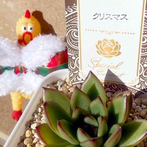 久々にチクチクしてみました🤭💕 クリチキン🎄です😂💕 今回はゴージャスに ビーズをあしらってみました✨ 添え多肉は…… 我が家の美人紫三姉妹✨ #ネオンブレーカー #ダスティーローズ さて、もうひとつ…… 誰?🙄💦 成長点がちょっとうねりだしてきたよ?