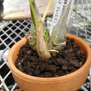 花芽が来ました♪その② チシス リミンギー Chysis limminghei 紡錘形の去年のバルブ。まだ葉っぱ残ってます。そしてその株元から出た新芽🌱 その子が少しずつ成長して、それに花芽が付くんだよ〜👀❗️ なかなかの変則感。 前年の大きなバルブからもきっと栄養貰ってるのね。 だもんで花芽もとっても小さくて、大丈夫なのかいな?これで! と思うような頼りなさ😅 上手く咲けばいいなぁ。まだ咲かせてないけど資料写真だと可愛いお花なのよ。 冬越しは暖かい室内で。レース越しの光の当たる出窓のポジションをほとんど動かさずに、見守っております。 あ、冬場も今も水は切らないで湿らせ気味に保ってます🤘