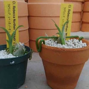 Clowesia Grace Dunn クロウェシア グレース ダン 若芽が大きくなってきた。全部で3+1。1、というのは、しばらく3本だったのが、最近、手前のちびっこが生長し始めたから。 ただ、全体的にヒョロっとしてる印象。芽掻きすべき?ちなみに、多分2株寄せ株です。
