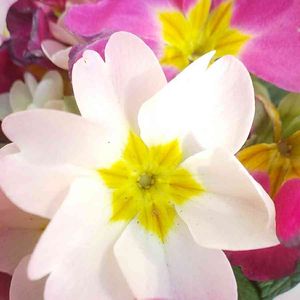 なのさんに、わたあめカメラという手法を教えてもらい、挑戦してみたポリアンサスです。 なかなか鮮やかな何種類かの 花が病院の玄関先に飾られて、春らしい彩りでした。🤗