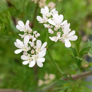 ❀🌿パクチー🌿❀ (シャンサイ) こぼれ種からの開花 🤍5年前の栽培当初、簡易ビニールトンネルで防寒。 その後、防寒せず越冬 🤍食べて愛でて、種がこぼれ落ちて、繰り返しの露地栽培 🤍花は、サラダなどで生食できるそうです