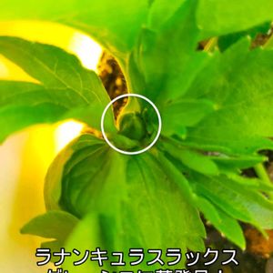 10月16日に植え付けをした『ラナンキュラスラックス グレーシス 』に早くも蕾ができました✨ グレーシスは、私の一番大好きなラックスなのですが、遅咲きのため咲いた頃には気温が高く、あっという間に満開になり、花が終わってしまいます それがいつも残念に思っていて、 今シーズンなんちゃって促成栽培をしてみました🎶 通常促成栽培といえば、芽出しした苗を一定期間冷蔵庫に入れて、いち早く冬を感じさせることで開花を早めます 我が家では芽出しした苗を冷蔵庫に入れることができないので、給水作業をする期間をいつもより長くしてみました! 遅咲き品種『グレーシス』『アリアドネ』 9/6 冷蔵庫で給水作業開始 9/16 鉢へ植え付け 11/30『グレーシス』に蕾確認 湿らせたキッチンペーパーにくるみ、40日間冷蔵処理したことにより、遅咲きのはずのグレーシスにいち早く蕾が出来ました❣️ ただ、同じように40日間冷蔵処理した『アリアドネ』には蕾ができていません あと、2品種の違いがもう一つ 蕾を付けていない『アリアドネ』は葉がたくさんしげっているのに対し、蕾を付けた『グレーシス』は葉が少ないこと 例年はもっと葉がいっぱいしげります 蕾を付けるのにエネルギーを使ったのでしょうか? 今週最低温度が0℃になる日も出てくるそうで、この蕾が開花するのはいつになるかな? 霜にあてないよう気をつけないといけませんね✨ 蕾つながりで ③庭のこぼれ種から生まれた『クリスマスローズ 』に蕾ができました! 早すぎませんか? 親は一重の白のクリスマスローズだと思います この子は毎年3月頃に開花します あまりに早すぎて、驚いています ちなみにこのこぼれ種のクリスマスローズは、初開花です