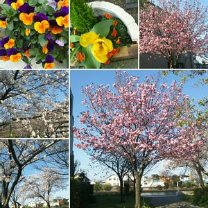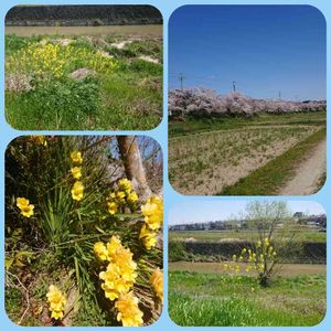 近所の🌸sακυяα 🌸並木を散歩して、菜の花と黄色の水仙が咲いていました🚶 💕