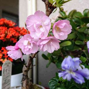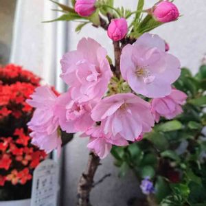 今日の桜盆栽🌸「旭山」 濃いピンクの花びらが開いてきました(´˘` )♪