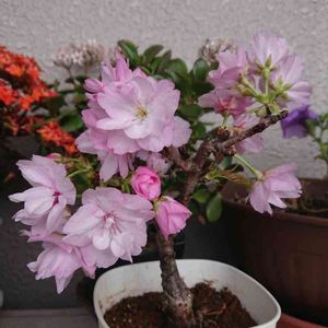 今日の桜盆栽🌸「旭山」 カランコエ💮とパルマすみれ