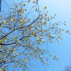 おはようございます。 昨日は快晴でした。入院以来初めて外に出て歩きました。 病院の周り、沢山桜ありましたが、散る桜🌸🌸🌸でした、、 その中にグリーンの桜がありました💚まだこれから咲くようです。蕾が沢山ありましたから。 人は、1人も居なかったです。
