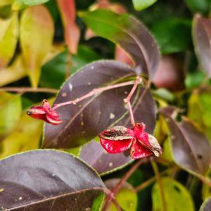 🍁ゴンズイ🍁 (ミツバウツギ科 ミツバウツギ属) いつもの遊歩道は実が弾ける前に剪定され…その後は見てないけれど…違う場所にゴンズイが…\(^^)/❤️ 絶対に葉っぱがゴンズイ 種はないけれど この赤い実殻もゴンズイ✌️ あんなにへばり付いて見てたもん😄 …と、言いきって違ってたら恥ずかしいなぁ〰🤣 間違ってたら教えてください🙏😊 後は ⚫ぶら下がってる所を見てみたいな🌿🎶