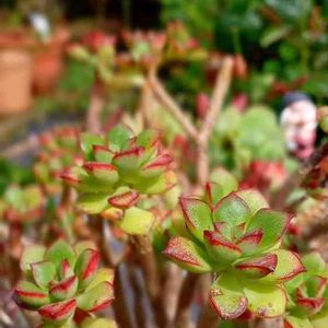 こんにちは😃♬ 森の妖精 グストです^o^⤴️♬ エケベリアにしては葉が小さく育ち木立化するとても可愛い子😍💕❤️ お色も可愛くなってきました^o^ 今日も暑くなりそうですねー☀️ コロナ、熱中症🥵、雷雨に気を付けて素敵な一日をお過ごしください❤️