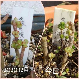 エケベリア グスト 右 去年2月 左 最近 こんなに成長していたとは(;・`д・́)...ゴクリ...(`・д́・;) ベランダ出しっぱなしで冬越しにしたけど、少し葉が傷んだ程度で済んだ。 枝が凍ってダメになったりしなかった。 今年も出しっぱなしにするのでよろしくお願いいたします。