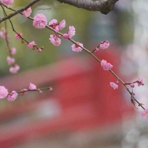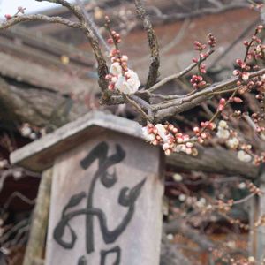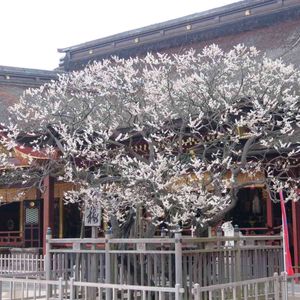 飛び梅便り最終回 開花から3週目、満開です。 今年は開花は遅かったのですが、その後が 早いペースで開花が進みました。 境内も開花が進んでいて、 良い香りですよ。