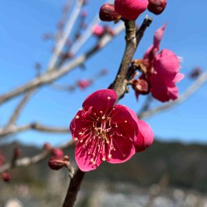 こんにちは👋😃昨日の福寿草の後こちらの梅祭りにも立ち寄りましたよ~🎶白やピンクや赤の梅が青空に映えて綺麗に咲いて香りも良かったです😌💓