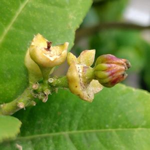 実家に行った時の📷。 佛手柑、実が留まらないらしい。 現在、小さい手は、もう見えてるんですけど……、成長して欲しいものです。