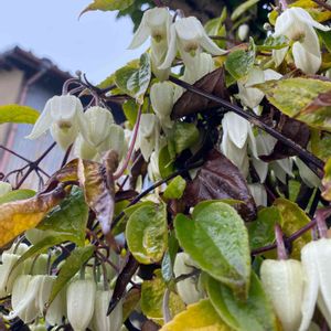 すみませんっ💦 昨日 誇張してお伝えしておりましたので、訂正いたします🙇♀️ 冬クレマチスのアンスンエンシスさん🤍 壁一面と言いましたが、トレリスでした💦 こんな感じです 大変失礼いたしました💦🙇♀️
