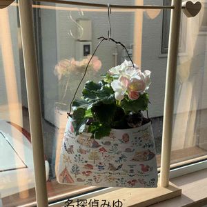 昨夜から天気が荒れています⛄️ 夜勤中ですが、帰る頃には外は真っ白になってそう❄️ 今週もよろしくお願いします。 たかりえさんのリメ缶バックにリーガスベコニアを植え替えました🌿
