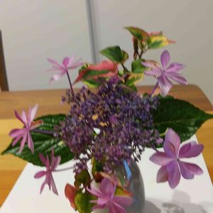 知人から「季節外れの紫陽花が咲きました」と送られてきた写真です。 アップでお届けします。素敵な色合いでしょう?🤗