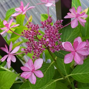 「ダンスパーティ」 我が家で2番目に古株のアジサイ、「ダンスパーティ」 極々普通の「ダンスパーティ」ですが、このお花だけ色が濃くて赤っぽく、真ん中の方にも装飾花が咲いています😚