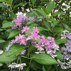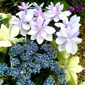 学名…Hydrangea hybrida 'Dance Party' 科名…アジサイ科 属名…アジサイ属(ハイドランジア属) 原産国…アジア、北アメリカ 花色…ピンク、ブルー