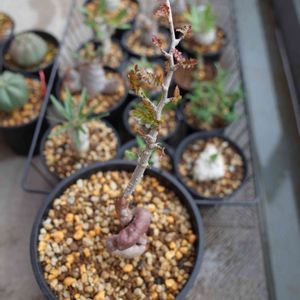 オペルクリカリア・パキプス 根挿し まだまだ成長著しい! 茎もしっかりしてきました。 直射日光当てて、雨の日もそのまま。 水は他の塊根より頻度多めにあげてます。乾いたらあげる感じかな。