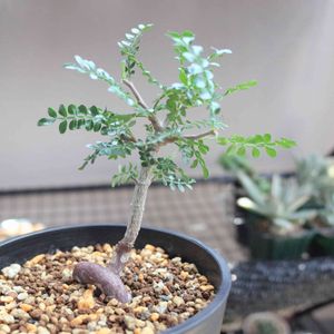 オペルクリカリア・パキプス モサモサ。このチマチマ葉っぱ。可愛くてたまらん♪ 塊根太ってるけど、茎がまだまだゴリゴリになら無い。枝も分岐して欲しいけど、う~ん、強剪定すべきか悩ましい。