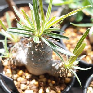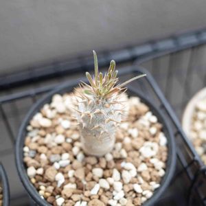 パキポディウム・グラキリス(なんちゃって実生) BBでちびグラキリスセットを入手。種からは自信ないけど、ここからなんちゃって実生開始します!✨ 今日お迎えの儀式、植え替えを実行。本当は小さい子は根を触りたくないけど、綺麗にしたいのと、水やりの頻度の管理がしやすくなるので決行。 これからガンガン日差し当てて、風に晒すぞ!!と言いつつ場所がない…今更だけど😁