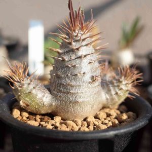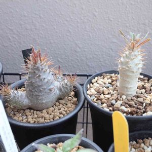 パキポディウム・グラキリス 白グラキリス。足元の分岐したところが元気!そして、頭の分岐も進んでる♪😊