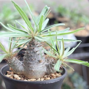 パキポディウム・グラキリス 水不足で少しへこみ気味のグラキリス、頭の分岐も進んでいい感じ。 ほんとは今日水やりしたかったけど雨なので少し微妙。 鉢は軽くて中はからからだけど雨吹き込みそうだしな~🤔
