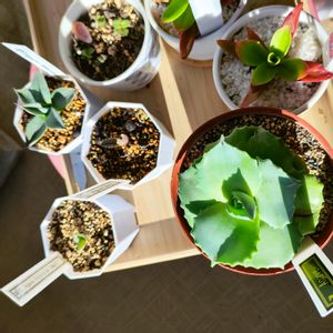 コンパクトで(今のところ)トゲトゲ して、アロエとは思えない見た目。 ハイブリッドやテンプラもカッコいい けど、高いし枯らしたら可哀そう なので、この子たちに決めました。